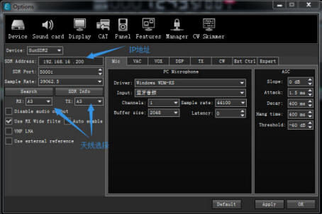 skimmer上,用两条vac就可以给两个skimmer解调两个波段的cw信号。具体怎么连线,其实是根据你的需求,就像传统的电台和电脑连接,你需要知道你自己在干什么。理解了,再复杂的电路都不难。