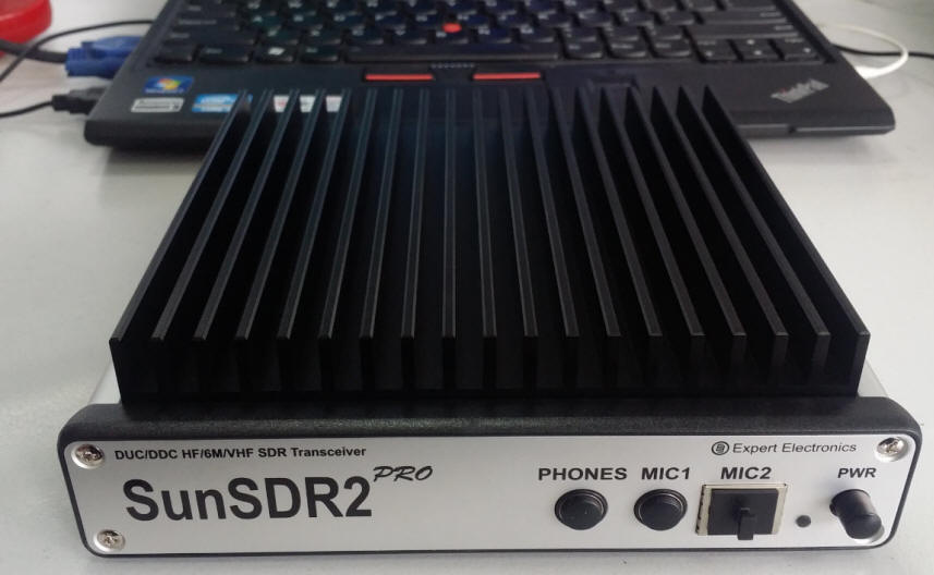 收到了新的SUNSDR2,转接线对了,软件也没有问题,可以进一步测试下去。先说一下接口和连线,之前的传统电台的连接线越来越简单,从K3的一条标准串口线+两根标准音频线搞定所有和计算机的连接开始,后面的icom、kenwood、yaesu的新机型都是一根USB线完成所有的连接,不过这三家的CW发射除非用KY命令,否则还是需要另外一条CW发射控制线。而SUNSDR2和计算机的连接只需要一根网线,如果配置了wifi模块,那么和计算机就没有硬链接了,SUNSDR2只需要连接好天线,自动键,PTT,电源线就可以了,音频上可以使用普通的电脑耳麦,也可以用YAESU