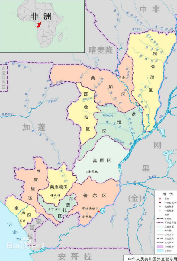 刚果共和国简称为刚果(布),位于非洲中西部,赤道横贯中部,东、南两面邻刚果(金)、安哥拉,北接中非、喀麦隆,西连加蓬,西南临大西洋。首都为布拉柴维尔,海岸线长150多公里,总面积为34万平方公里,首都布拉柴维尔,人口566万。13—14世纪建立刚果王国。15世纪起被葡萄牙、英国和法国先后入侵。1884年被划为法国殖民地。1958年成为自治共和国。1960年8月15日完全独立,定名刚果共和国。1969年改名刚果人民共和国,1991年改回现名。