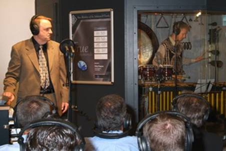 图4:这是讲座上展示的全部产品 讲座的心脏部分由主讲人麦克·帕泼斯担任。他是国际音频技术学会(AES)美国科罗拉多州分会主席,也是美国全国广播系统委员会(National Radio Systems Committee)委员。该委员会是美国广播标准的管理组织。他还是美国数字音频广播小组的成员。麦克多次担任AES大会活动中5.1环绕声录音和广播技术的主讲人。他为美国的《专业音响新闻PSN》、《专业音频评论PAR》、《广播世界RW》和《广播杂志RM》等出版物撰写很多有关环绕声的文章。自1994年以来,他一直担任丹佛市KUVO电台爵士89频道(丹佛市89.3兆赫,http://www.kuvo.org)的总工程师,并负责将KUVO电台建成科罗拉多州第一个正式播出的调频高清电台,也是第一家广播5.1环绕声节目的高清电台。 麦克是土生土长的威斯康星人,现在住在科罗拉多州丹佛市。于1975年建立了他第一个录音棚,并为各主要专业音频生产厂工作了好多年。最近12年里为美国主要电视广播网做了超过1500场现场体育赛事的转播,并为像2000年民主党全国大会这样的高要求活动工作过。他主持转播的大师赛、英地500及超级橄榄球37大赛等节目得到多次艾米奖提名。他为KUVO电台、全国公众电台NPR的爵士节目Jazzset(http://www.npr.org/programs/jazzset/)等客户录制并播出了国内和国际爵士艺术家节目。也为高清电台制作并广播了超过200小时的现场5.1环绕声音乐会。录制超过500小时的现场DSD节目。2006年1月16日开始担任森海泽尔电子公司高级应用工程师,同时保留他其它各种其它工作。现在他正为纽曼和森海泽尔公司进行5.1环绕声录音技术的德国巡回讲授。