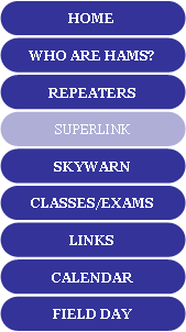 The SuperLink is intended for SHORT contacts. Priority use of the linking system is (1) emergencies, (2) weather (SkyWarn), and (3) general conversations. Please remember that the conversations on the link system may pass through several nodes and are broadcast over both the local and remote repeaters. Special care must be taken to shut the link down at both the remote and local repeaters after use.