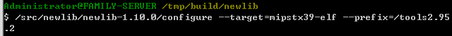 | At this point we have a bootstrap compiler called mipstx39-elf-gcc, located in /tools2.95.2/bin/. Now we'll build newlib, then return to finish building gcc. | ||||||||||||||||||||||||||||||||||||||||||||||||||||||||||||||||||||||||||||||||||||||||||||||||||