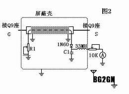制作过程: 首先制作屏蔽壳,将0.5MM铜板按图1尺寸剪裁,并用50W以上的电烙铁焊接,在剪裁具体尺寸时可根据实际选用的塑料机壳内壁尺寸作调整,屏蔽壳两端安装Q9座的预留孔也可根据自己的实际情况调整,只要便于合适安装. 这里选用的是120*79*40mm的塑料机壳,在机壳上合理安排布局,安装微安表及指针多圈电位器 屏蔽壳 Q9座等,可参照文中图片,也可以安自己意愿制作,因为主要部件在屏蔽壳中,所以外围器件的安装较随意. 接下来制作检测电路部分,取50--5电缆55mm,小心去除最外面的保护层,露出屏蔽网,将这一小段电缆放在平滑的桌面上,用手均匀搓动,使屏蔽网变松,小心取下屏蔽网.这时建议你找一副手套戴上,取 直径1mm长60mm一段铜线与电缆水平放置,用电烙铁加热,在电缆表面烫出一道凹槽,同样的方法在电缆的另一侧也烫出凹槽,并用刀修整光滑. 把屏蔽网慢慢套回,在屏蔽网下面分别串入两段长100mm的电话电缆芯线(或用0.8mm漆包线套上绝缘管),这两段导线就是检测带.取合适长度的热缩管套在屏蔽网外面加热(屏蔽网两边各留出10mm接地用),形成一个整体.按图2电路把电缆及各元件在屏蔽壳中焊接好,采取就近接地的原则,走线尽量要短,因V/U 两段电路相同,所以图中只画了一个波段的电路,元件未标注数值的在后面调整说明里介绍.图中没有画出V/U两段的转换开关,实际制作时加在电感与10K多圈电位器之间.