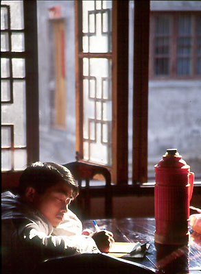 午后小饭馆客人逐渐离去,伙计在计算着收入