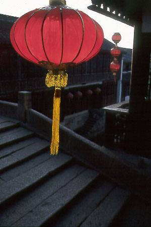 到处高挂的大红灯笼是水乡的又一风景