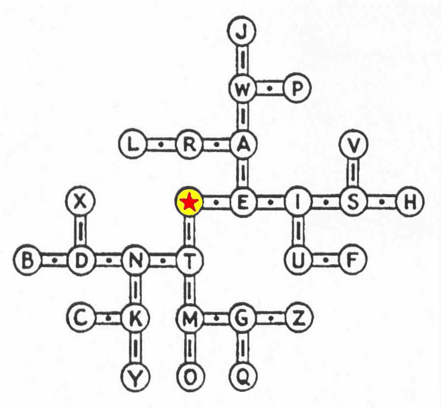 A sua utilização é muito simples, considerando a estrela como o ponto de partida, anotem cada ponto e traço até chegarem à letra desejada.