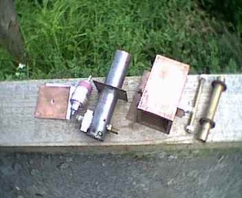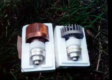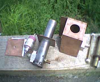 23 cm quarter Kw cavity amplifier with Gu-7 russian tube, design from CT1DMK ( See his PAGE ) and 1Kw vhf amp in construction. Two new tubes, GS35 and GS31.Tnx to JA8FDT who sells all kind of Russian tubes. GI-7 2 meters amplifier.The idea was to make it the smaller possible.Size is: 25(w)X25(d)X15(h,cm),complete, including coax relay ,PS etc.Max power i have been able to get was 250W.I will include more info on it when it will be completely finished...