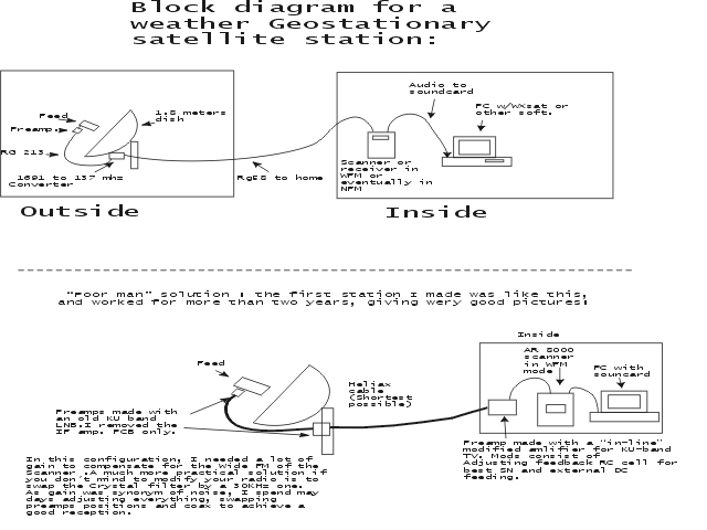 Below you will find how i receive Meteosat7 24/h day .I suppose WXsat will work fine,but i use the "PROSAT" softare,by Timestep.(comercialized by: timestep PObox 2001 Newmarket CB8 8XB in England and SPECTRUM international concord-Mass. in the USA. I have no comercial relations with them, they just where the cheaper i found ,and the USA team was nice and helpfull.)