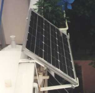 Das Modul wurde in 2 Blumenkastenhalterungen eingehängt und mit Schellen