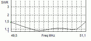 Match with 2xLambda/4 75-Ohm-coax in parallel to a grounded socket, feedpoint impedance 50Ohm. This antenna was designed for mounting 1,50-1,80 m above a shortwave-beam without detuning, this yagi has a great bandwith and is uncritical in the data. |