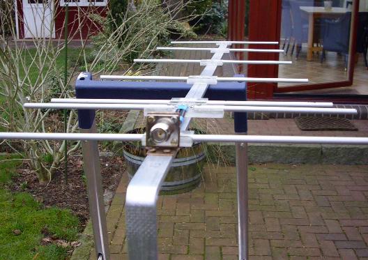 Werner, DJ9KH has mounted the socket behind the reflector.The boom consists of flat aluminium and will be arranged in front of the mast.
