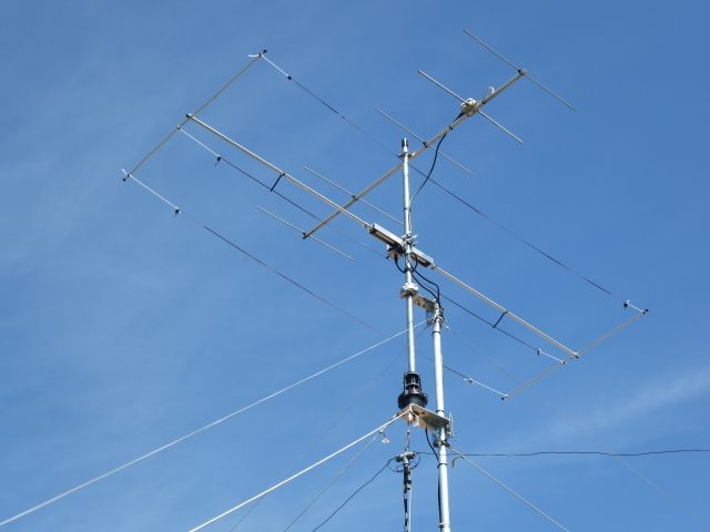 This is the antenna built by Bruno, F6GPC Above a 5-El.-DK7ZB-Yagi for the 2-m-Band