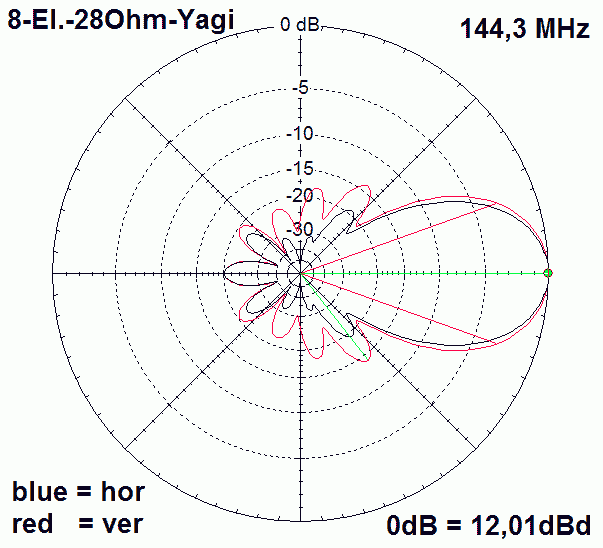 Gain 12,0dBd, F/B 20dBd Boom 4,40m, Broadband Stacking distance 3,20m 3dB-angles: 35,8° hor, 39,4° ver