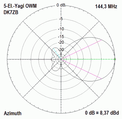 28-Ohm-OWM-Yagi with 5 Elements for 144 MHz