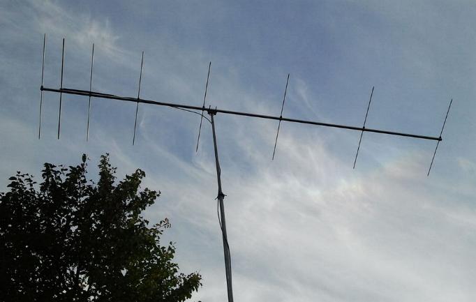 The 8LFAD with an open dipole and the 12,5-Ohm-DK7ZB-match built by Andy, SP3IYM He reports about a very good low SWR bandwidth and good receiving results. He used the given lengths of 8-mm-parasitic elements with the black Polyamid- holders and a 12-mm- radiator without any tuning! |