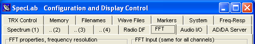 The 'Configuration and Display Control' panel is a tabbed window, which can be opened from SL's main window through the main window. For example, Options ... FFT Settings in the main menu will take you directly to the 'FFT' tab visible in the screenshow below.