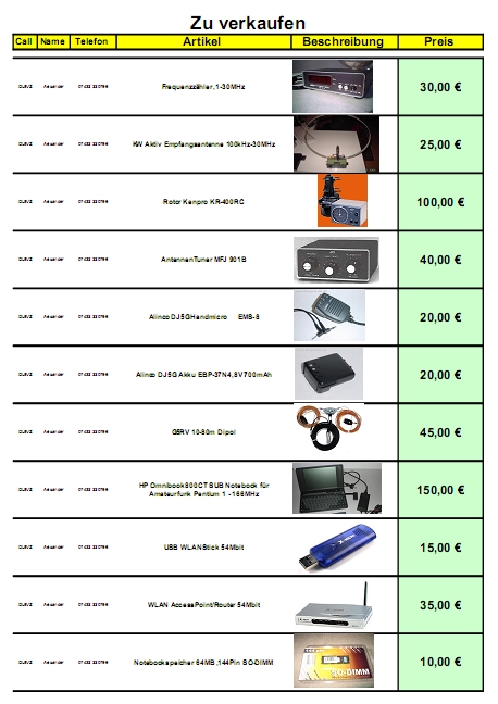Hier stelle ich in unregelmässigen Abständen Geräte und Zubehör ein die zum Verkauf angeboten werden