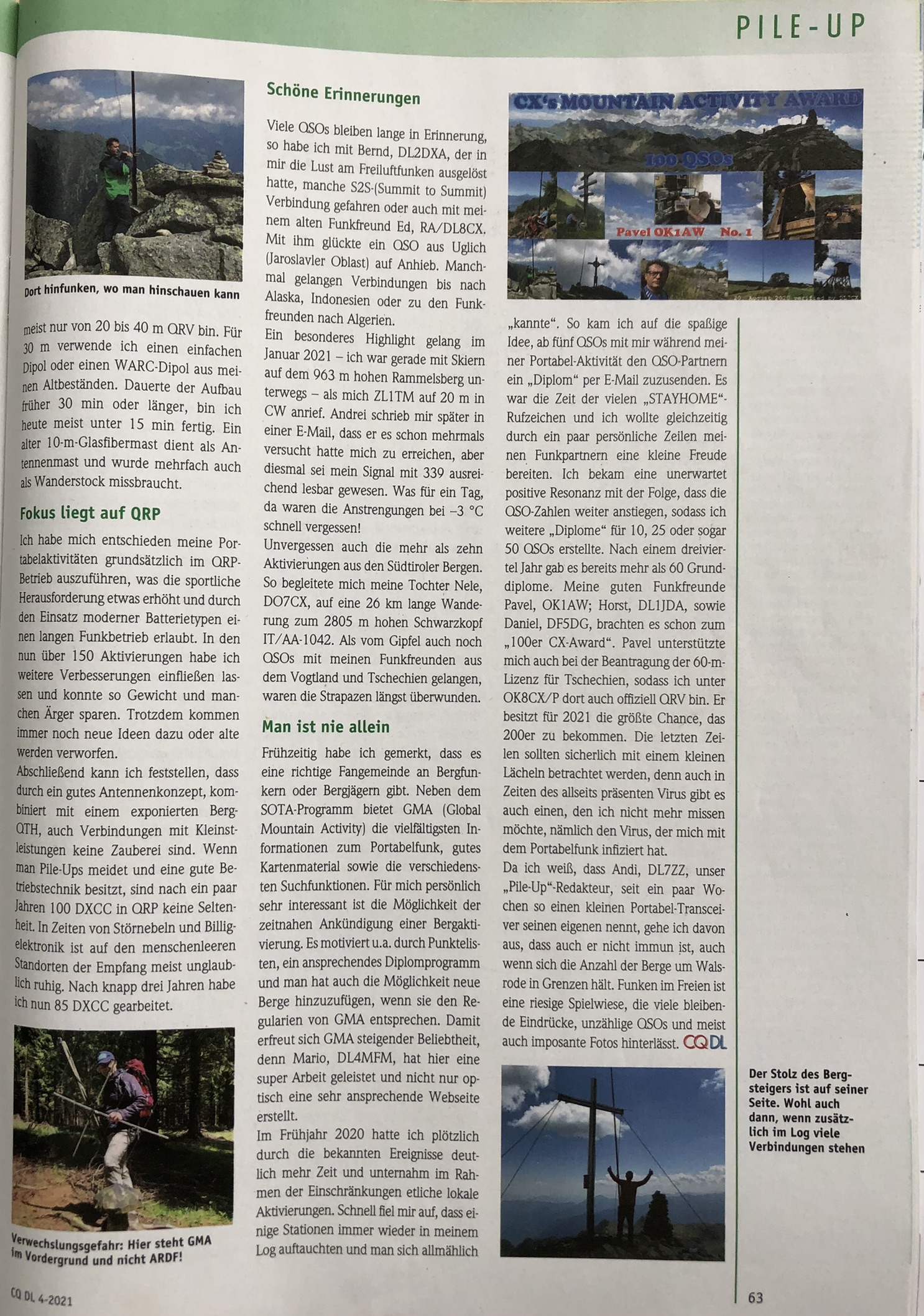 2024 April: Solvakia coming up 2023 June Colorado/Utah activity story: Bergkurier Colorado part 1 Colorado part 2 2022 Alsace/France activity story: Bergkurier France 2022 S�dtirol activity story: Bergkurier Teil 1 + Bergkurier Teil 2 (pdf files in German about my 2022 IN3 activities) I wrote an article about my way to outdoor radio in the CQDL 04/2021 last year: There are also 3 stories in the Bergkurier about my favorite Czech summits (here in pdf: 281, 282, 283) . or here http://www.dl2lto.de/SBW Bergkurier (pdf-file available) FUNNY: There are always glorious moments. I love to take photos during my summiting... cool memories... Sometimes I'm clumsy - tollpatschig! You always forget something. https://youtu.be/E3pig247HHw ...dare to fail!