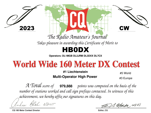 Lieblingsband - 160m - das Topband - gearbeitete DXCC seit 2002: 2024: S21DX 2023: VK9DX, AP2HA, 4W8X, 7O8AD 2022: VU4W, 5R8PA-5R8MM 2020: TT8SN, CP6/DK7PE, TO7DL, 7Q7RU 2019: VP8EME, V84SAA, XR0ZRC, VP6R, 8R1/AG6UT, A50BOC 2018: Z60A, 9M0W, ZL7X 2017: RI1ANR, XX9C, 3C0L, 3C1L, 9U4M, VK9MA and YB1AR 2016: FR4NT, ZD8W, B90IARU, JD1BMH, XW4ZW, VP8STI, VP8SGI, 7P8C, C92CC, 3DA0CC, VK0EK, FT4JA, JW/DL7DF, A25UK, EP2A 2002 -2015: H7DX, VP2MDY, TI9M, PW0T, UK9AA, HZ1AB, CO8ZZ, N7JW, SV2ASP/a, PJ2/DL7DF, VP5/W5AO, D44AC, PT7BZ, HK6KKK, ET3PMW, CX1SI, J75PA, 3XY7C, 5N0NHD, 9L1AB, CY0MM, JT1FHD, S9LL, C56M, FM5BH, XT2DX, JT1CO, 6W6/K3IPK, V31YN, FP/JA9KRO, TI5/KI7VR, ZF2NT, PR0F, HH6/DL7CM, V31YN, KG4MO, ZS4TX, HP1/DJ7AA, 9Y4/IV3IYH-DL6RAI, CE6AX, ST0RY, ZS6UT, ZP6CW, XQ6ET, LU7DZ, PY2WC, OA4WW, KV4FZ, CY9R, VP2EJF, 9V1GO, YI9ZF, DU9/N0NM, J28XX, YI9ZF, P40W, C6ALK, J79JRC, YA/DL2JRM, 3B9C, ZD7F, TJ3G, 8P1A, 9K2MU, 5T5SN, VR2MY, HS72B, 8Q7DV, 9N7BCC, BV4CT, 5Z4DZ, KL7HBK, XE1KK, 9G1TF, R1MVW, VK9AA, 9M2AX, TZ5A, PJ5NA, PZ5PA, ZB2FK,V51AS, 3Y0X, FS/KN5G,DL7DF, VP2V/G6AY, HQ9F, TY5WP, S01R, J6/K8LEE, 4O3M, 5A7A, HK0GU, VU7RG, YW0DX, W6XX, 4O3M, VK9DNX, HV0A, J3/DL7VOG, 3B7C, A71EM, E4/OM2DX, J5C, VP6DX, 9X0R, HC2SL, ZL3IX, 4S7NE, 3B8CF, E7DX, K5D, YS4M, PJ7E, PJ6A, OX/DL1RTL,DL2SWW, 5X0CW, PJ7E, PJ6A, TR8CA, PJ2/W8WTS, PJ5/SP6EQZ, RW0CR, RI1FJ, KH6AT, ZL8X, Z21BB, VU2PAI, 9Q50ON; all 40 Zones on 160m, VP8ORK, T88ZM, DU1/JJ5GMJ, CE1/K7CA, PJ2/W5FXK, TL0CW, TU2T, KH2/N2NL, HK0NA, PY0S, TX5K, J87GU, Z81X, FT5ZM, K1N Logsearch 2024 LOG SEARCH DL7CX (Clublog) Contest-Statistik 2022/23