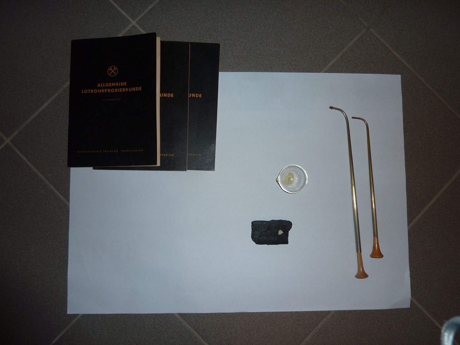 In dieser Rubrik zeige ich, wie ein einfacher Nachweis der gefundenen Mineralien möglich ist. Mein Papa hat dazu einfache chemische Experimente durchgeführt (Boraxperle, Lötrohr). Manchmal darf ich mit helfen. Die gelbe Farbe ist auf Grund der bleihaltigen Probe zurückzuführen.