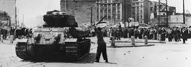 Bild: Berlin-Potsdamer Pl. - in Ostberlin 17. Juni 1953 mit Pflastersteinen gegen die sowjetischen Panzer. -
