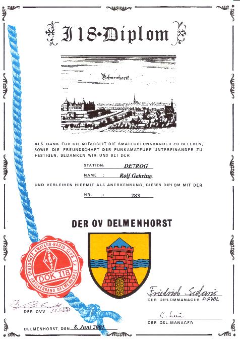Hiermit beantrage ich das I18-Diplom als SWL (portable aus Frankfurt). Anbei mein Logbuchauszug.
