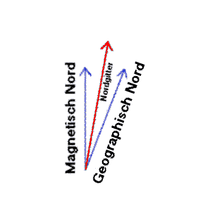 dies sind zwei ganz unterschiedliche Punkte der Erdoberfläche. Die magnetische Deklination gibt nun die Winkeldifferenz an einem Punkt der Erdoberfläche zu diesen beiden Polen an; sie ist also ortsabhängig und nebenbei auch zeitlich variabel. Um noch weiter zu verwirren: Auf vielen Wanderkarten befindet sich ein sog. UTM-Gitter, das nicht zum Nordpol ausgerichtet ist, aber nicht wesentlich von der Nordrichtung abweicht. |