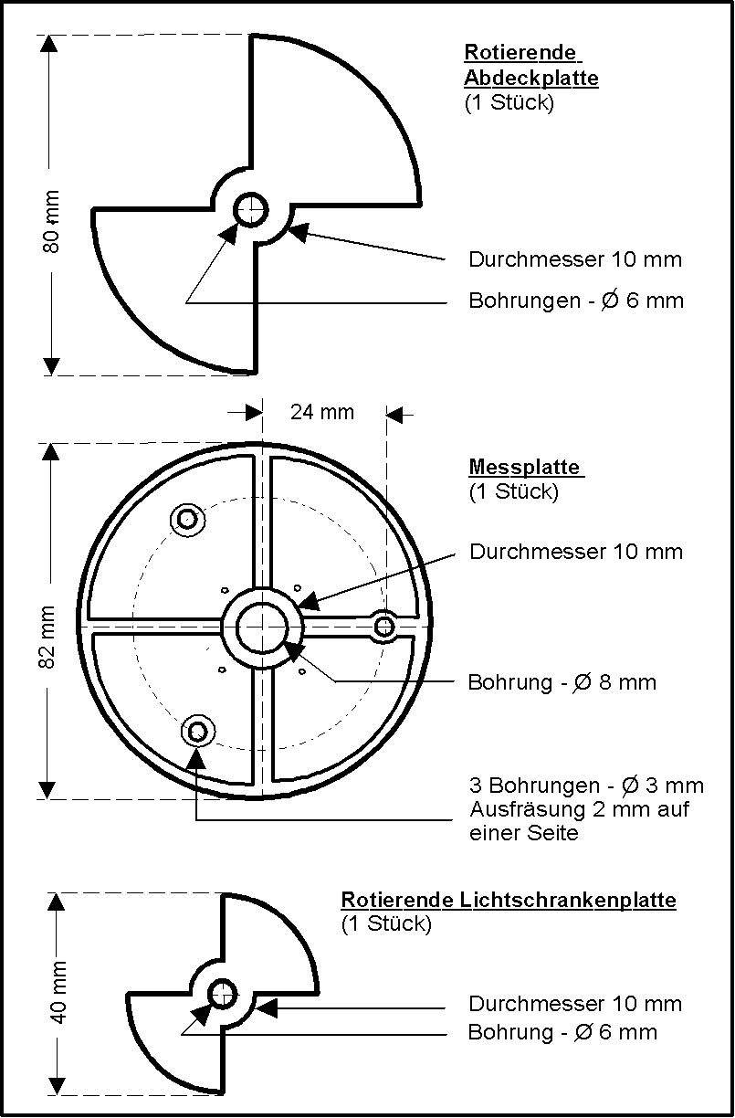 die obere Abdeckplatte und das kleinere Chopperrad für die Lichtschranke