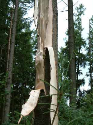 dem Einschlag gemacht. Die Rinde wurde dabei weggesprengt und war noch