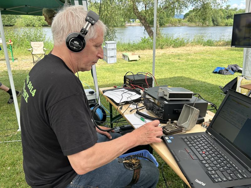 Andy, DL6FA an der Morsetaste und dem Laptop für die Logbucheintragung.