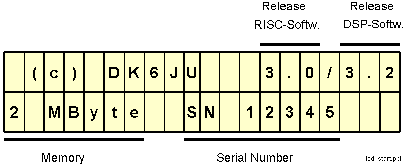 Die Anzeige des Betriebszustandes und aller relevanten Parameter erfolgt über ein LC-Display mit 2 Zeilen mit je 20 Zeichen. Nach dem Einschalten erscheint für ca. 1 sec folgende Anzeige: