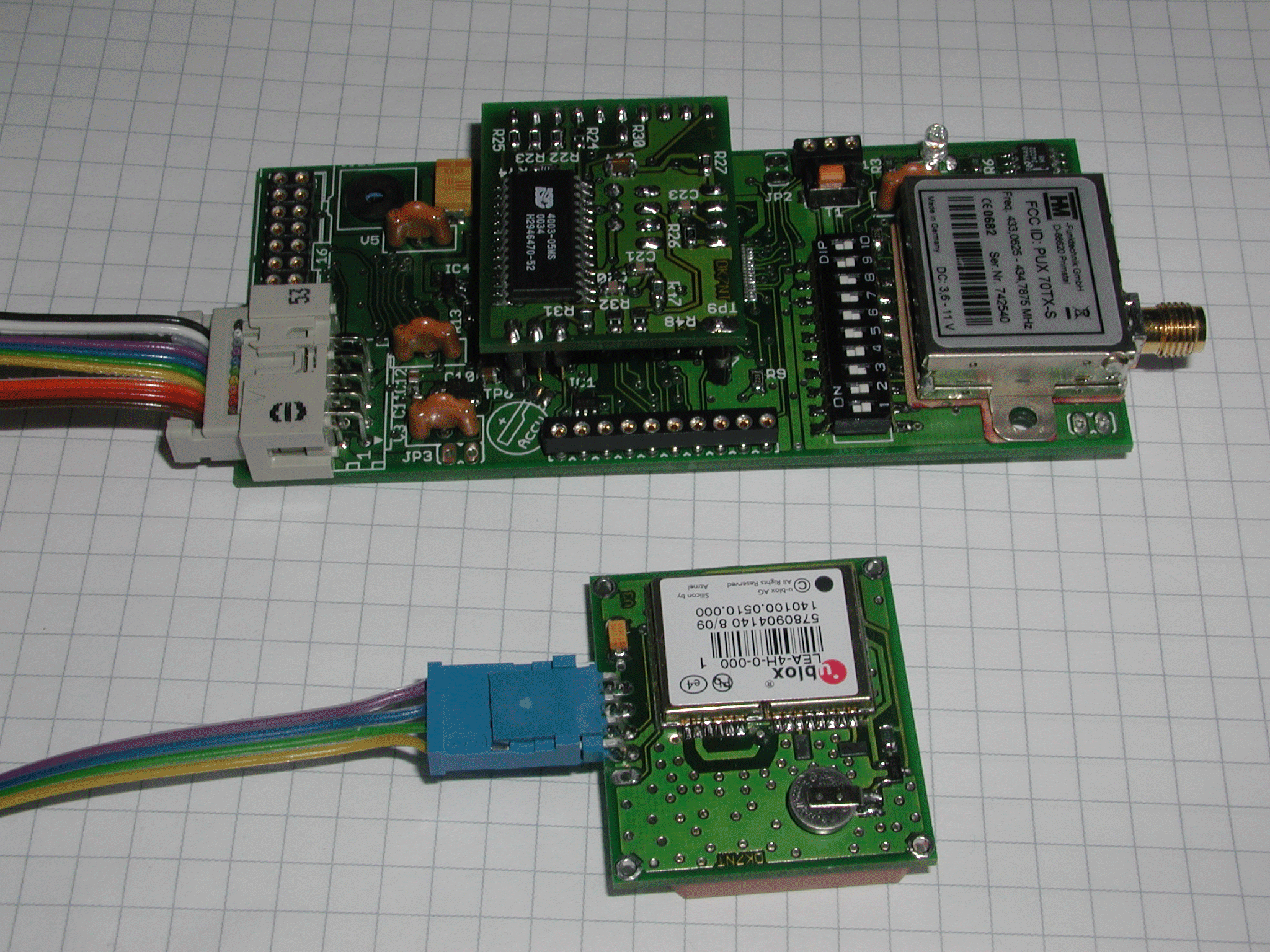 zweiter Flachbandkabelanschluß geht zum GPS-Empfänger (LEA-4/5H von u_blox) und