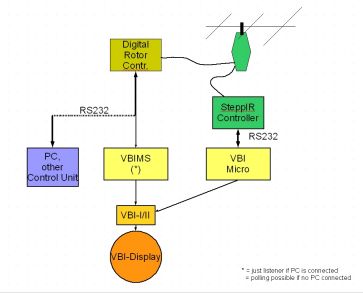(click to the picture)This new option (VBIMS) allows the connection of the VBI-360 Beam Indicator to almost any rotary unit. Independent on if the rotor feedback is analog or digital.