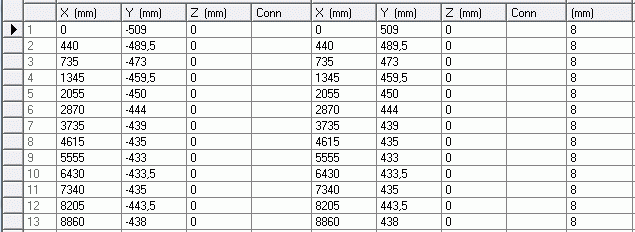 Lengths and positions of 8-mm-Elements (X = position, Y = element halves)