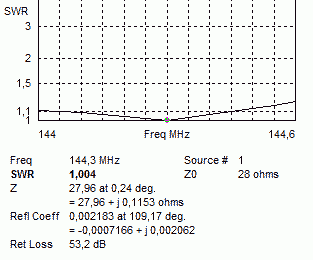 Longest version in the series Gain 16,15dBd F/R >30dB High gain and medium bandwidth, 2MHz for SWR <1,5 good pattern Stacking horizontal 5,39m, vertical 5,22m |