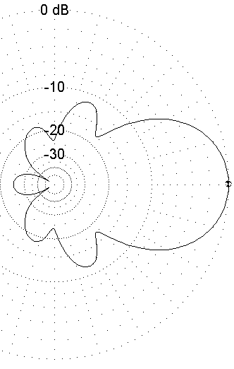 2 Yagis stacked vertically with 2,85m Vertical pattern (0dB=13,4dBd) |