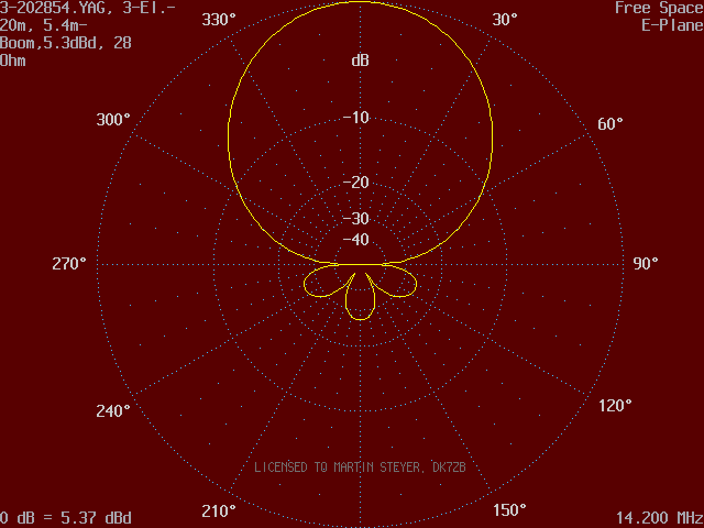 Frequency, gain, F/R, radiation resistance (impedance), SWR and loss against a theoretical defined maximum- gain-Yagi with the given boomlength. Remember that this gain is only available with very low impedance and extrem low bandwidth!