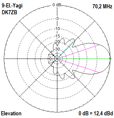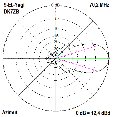 9-El.-28-Ohm-Yagi, Gain 12.4 dBd, F/B 30dB