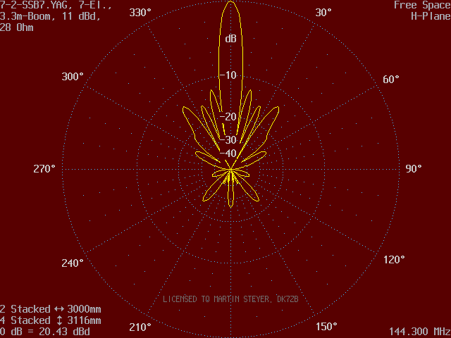 Horizontal pattern for 8x7-El.- Yagi-Group
