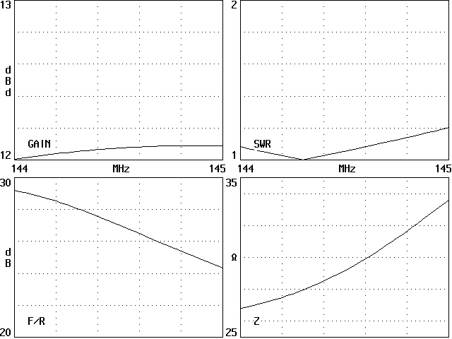 zeigen Gewinnverlauf, Anpassung ("SWR-Kurve"), Rückdämpfung und
