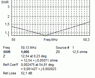 an additional SWR <1,15. The ideal resistance for the impedance would be 71Ω,
