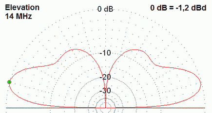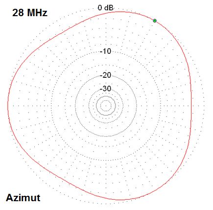 The elevation plots for the band 10 m - 40 m. The tip of the Triple-Leg is 15 m above the ground