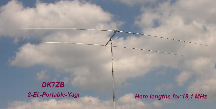 This Yagi has a constant element-distance of 1,50 m. You must only correct the lengths of the elements for QSY, see table down. For the bands 10 m and 12 m the Yagi is working as a reflector-radiator-Yagi, for 15 m and 17 m as a beam with radiator and director. All parts are not longer than 1,55 m and fit in a fishing bag for the transportation. The Yagis are a high-gain beams with small bandwidth. The dipole must be mounted insulated with two halfs, spacing 20 mm.