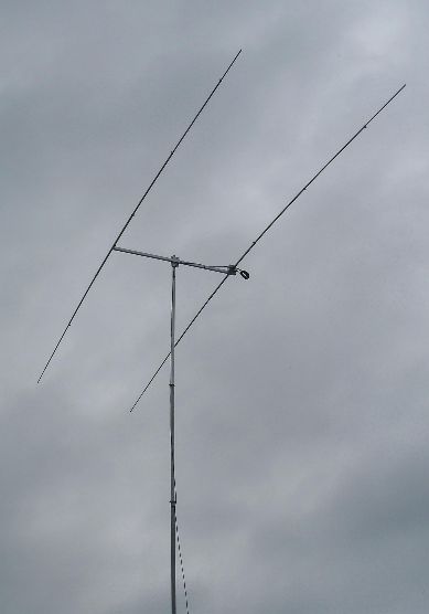 He has tested the difference between the 7-m-high Yagi and a HF9V-Vertical with 20 radials and optimal radiating conditions (see picture left). He reports 1-3 S-units plus for the Yagi in all situations.