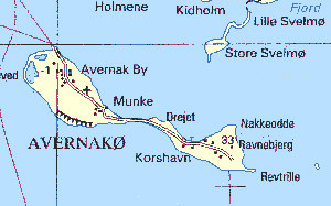Weg: Avernakø im Süden der Insel Fyn ist erreichbar ab Faaborg mit der Fähre Faaborg - Avernakø - Lyø (Preise 2001/hin und zurück: PKW 135 DKK, Erwachsener 80 DKK, genauere Informationen über www.oe-faergen.dk). Die Fähre fährt das ganze Jahr über 6 bis 8mal am Tag. Insel: wird noch vervollständigt |