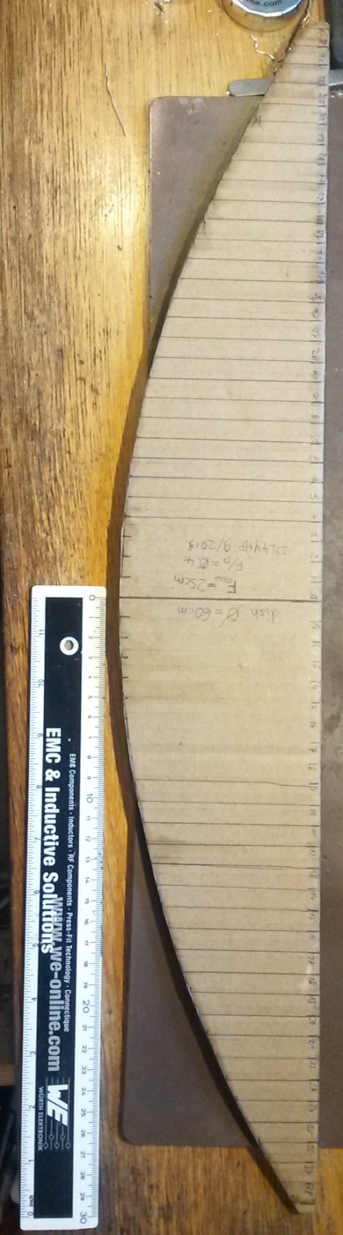 Thus, a template for a 60-cm diameter parabolic prime-focus dish