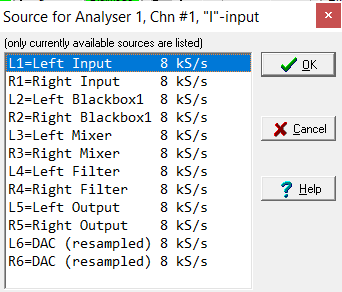 - L1 : Left input from the soundcard, or in-phase component from a software defined radio, after the input-decimator. If the software-defined radio has a large samping rate, this is often the first 'usable' input (for the spectrum analyser, etc) unless you have a really fast PC.