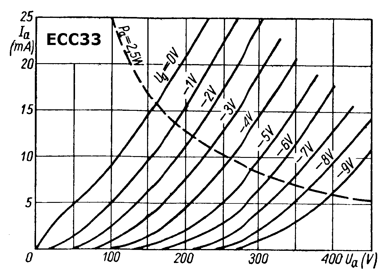 | Ia(Ug)-Kennlinienfeld Transfer Characteristics | Ia(Ua)-Kennlinienfeld Plate Characteristics |