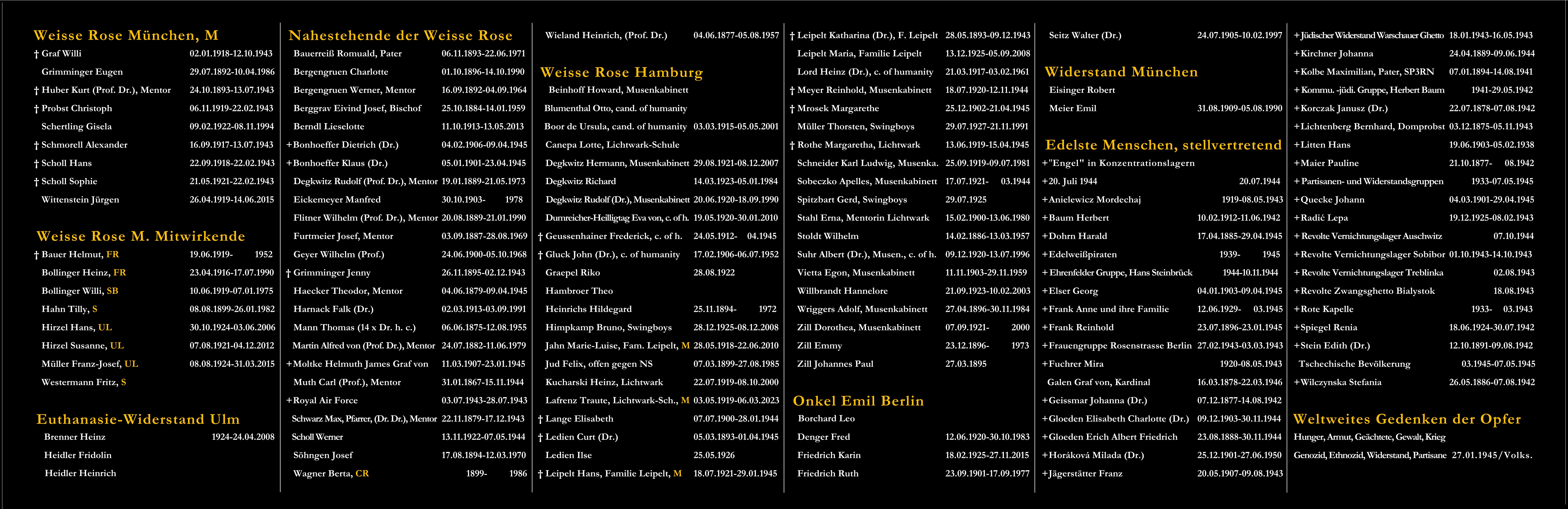 Symbol † erinnert an die 17 Menschen aus dem Weisse Rose Widerstandskreis, die