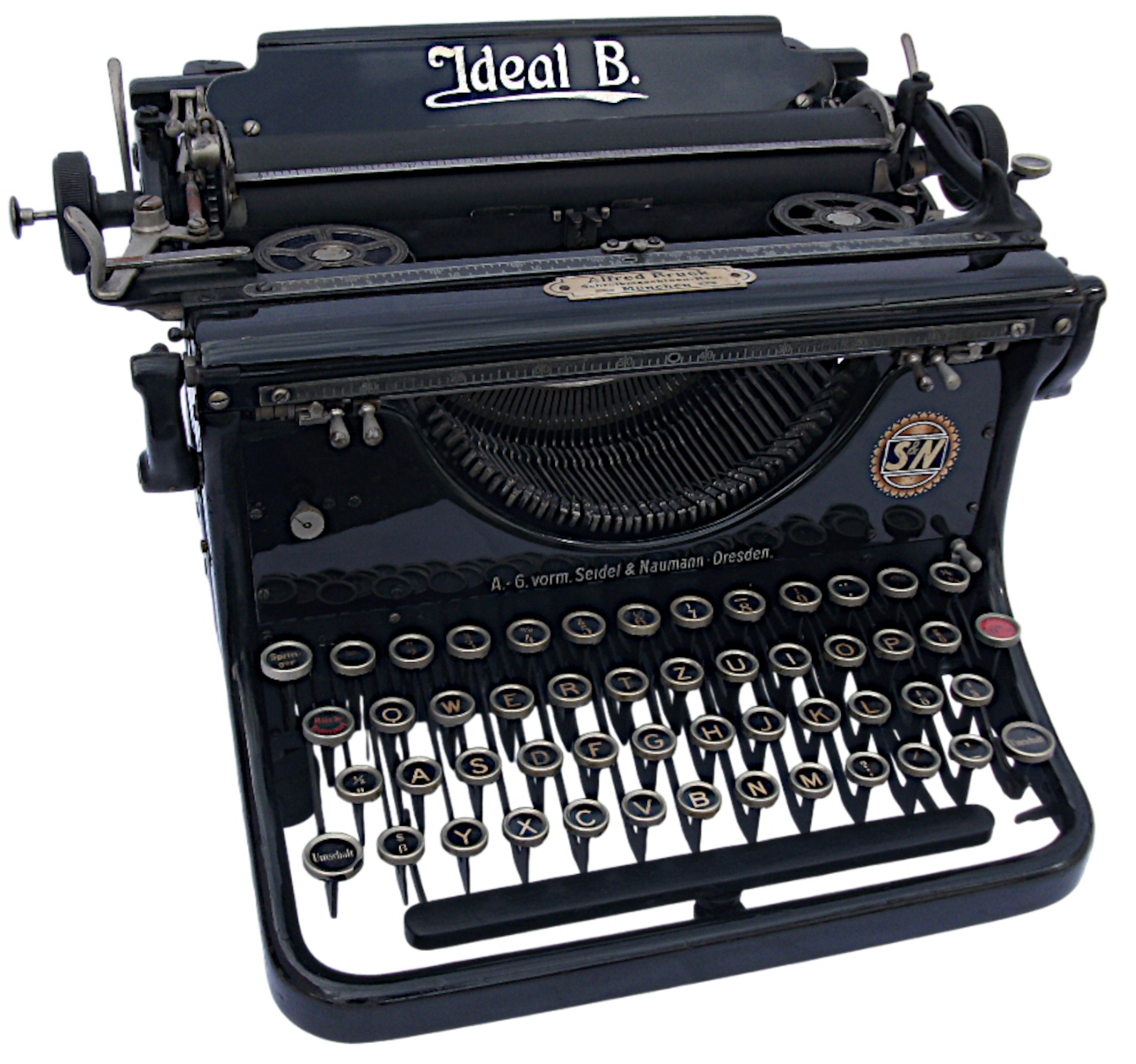 Schreibmaschine Marke Ideal mit Firmenzeichen S